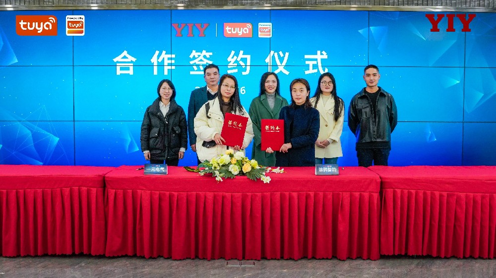 涂鴉智能市場(chǎng)及戰(zhàn)略合作副總裁兼CMO那競(jìng)丹、涂鴉智能中國(guó)區(qū)品牌業(yè)務(wù)總經(jīng)理溫晨、涂鴉智能中國(guó)區(qū)品牌業(yè)務(wù)高級(jí)經(jīng)理張賽賽、一元電氣董事長(zhǎng)夏洪鋒、一元電氣總經(jīng)理伍淑旦及一元電氣業(yè)務(wù)經(jīng)理錢樂(lè)娜等出席了本次合作簽約儀式。